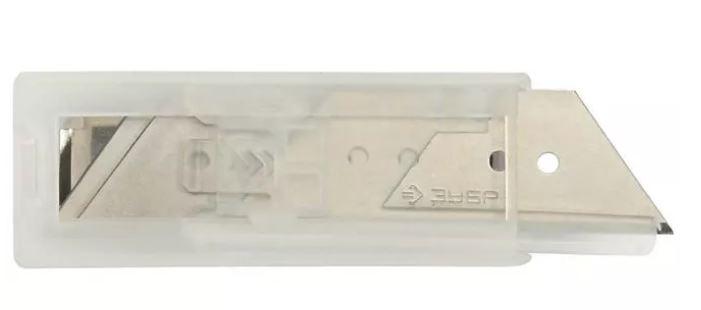 Сменное лезвие трапеция ЗУБР 09712-24-5, предназначено для профессионального применения. Лезвие изготовлено из легированной стали У8А, что увеличивает срок их службы. Двойная заточка сохраняет лезвие острым в течении длительного времени. Пластиковый футляр для безопасного хранения и быстрого извлечения лезвий.