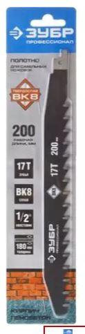 Полотно ЗУБР "Профессионал" с тв.зубьями для сабельной эл.ножовки по лёгкому бетону; 250/200, 17 зуб