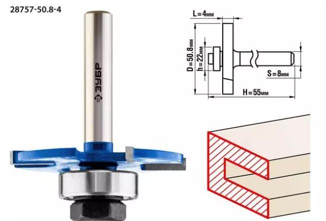 Фреза горизонтально-пазовая, D= 50,8мм, высота-4мм, хв.-8мм, d-22мм, ЗУБР Профессионал