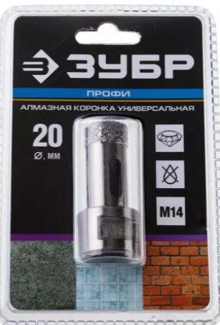 Буровая коронка алмазная ЗУБР 29865-20, применяется для сверления отверстий из керамогранита, камня, керамики, бетона, кирпича, ограниченно листового металла, дерева и комбинаций всех этих материалов. Сухое сверление. Алмазные сегменты на вакуумной пайке для большего срока службы.