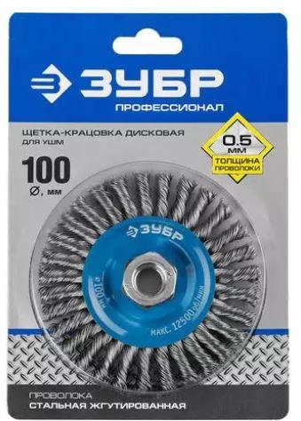 ЗУБР "ПРОФЕССИОНАЛ". Щетка дисковая для УШМ, плетеные пучки стальной проволоки 0,5мм, 100ммхМ14